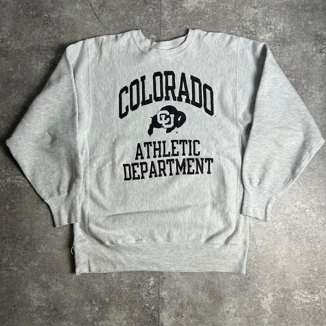 90年代のChampionリバースウィーブです。オハイオ州立大学ホッケーチームのロゴデザインが、グレーのボディに施され、カレッジアイテムならではの魅力を引き立てます。こちらの個体はアメリカ製。右袖に穴等、小さなダメージ、フロント部には小さなシミ、左わき腹辺りにもダメージが見られます。全体的に使用感が見られますが、状態は良好ですのでまだまだご着用頂けます。 IT8DH0LIOD68 実寸(平置き) 肩幅:約49cm 身幅:約56cm 袖丈:約59cm 着丈:約65.5cm 多少の誤差はご了承下さい。