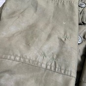 フロント第6ボタンと背面のボタン、右ひじ、左袖口にリペアが施されております。