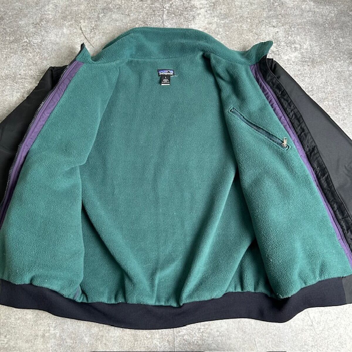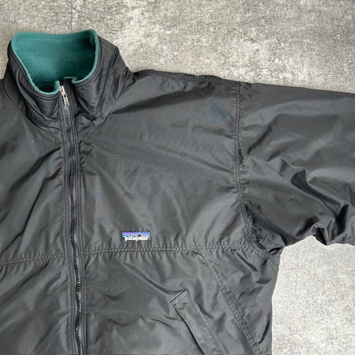 90's Patagonia パタゴニア ブラック ナイロン アメリカ製 シェルドシンチラジャケット シンチラフリース USA L 黒 135KO