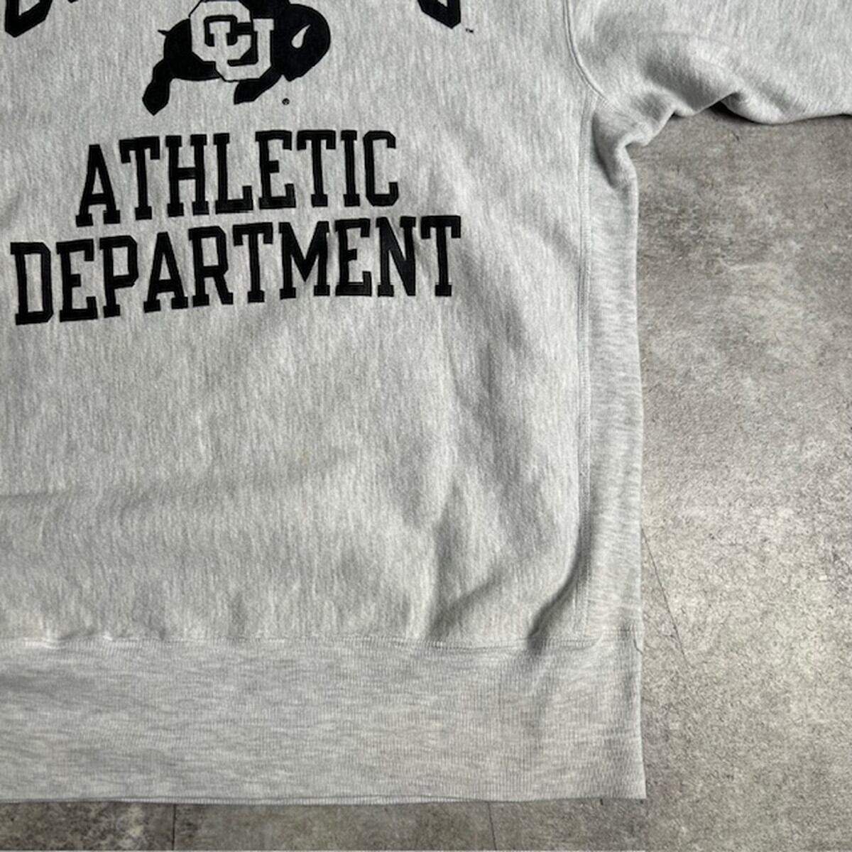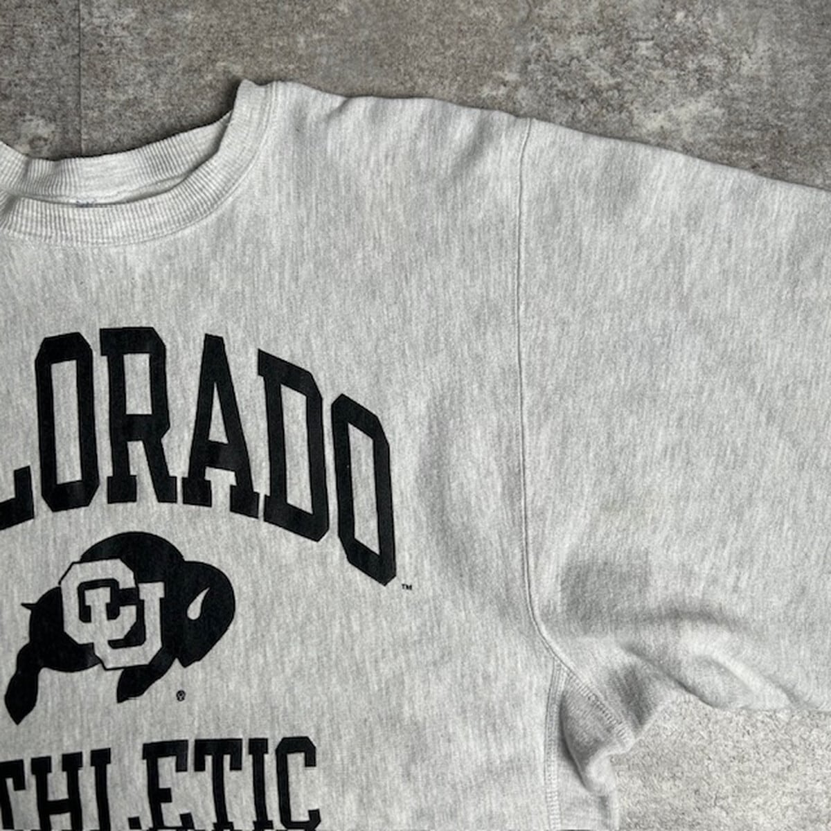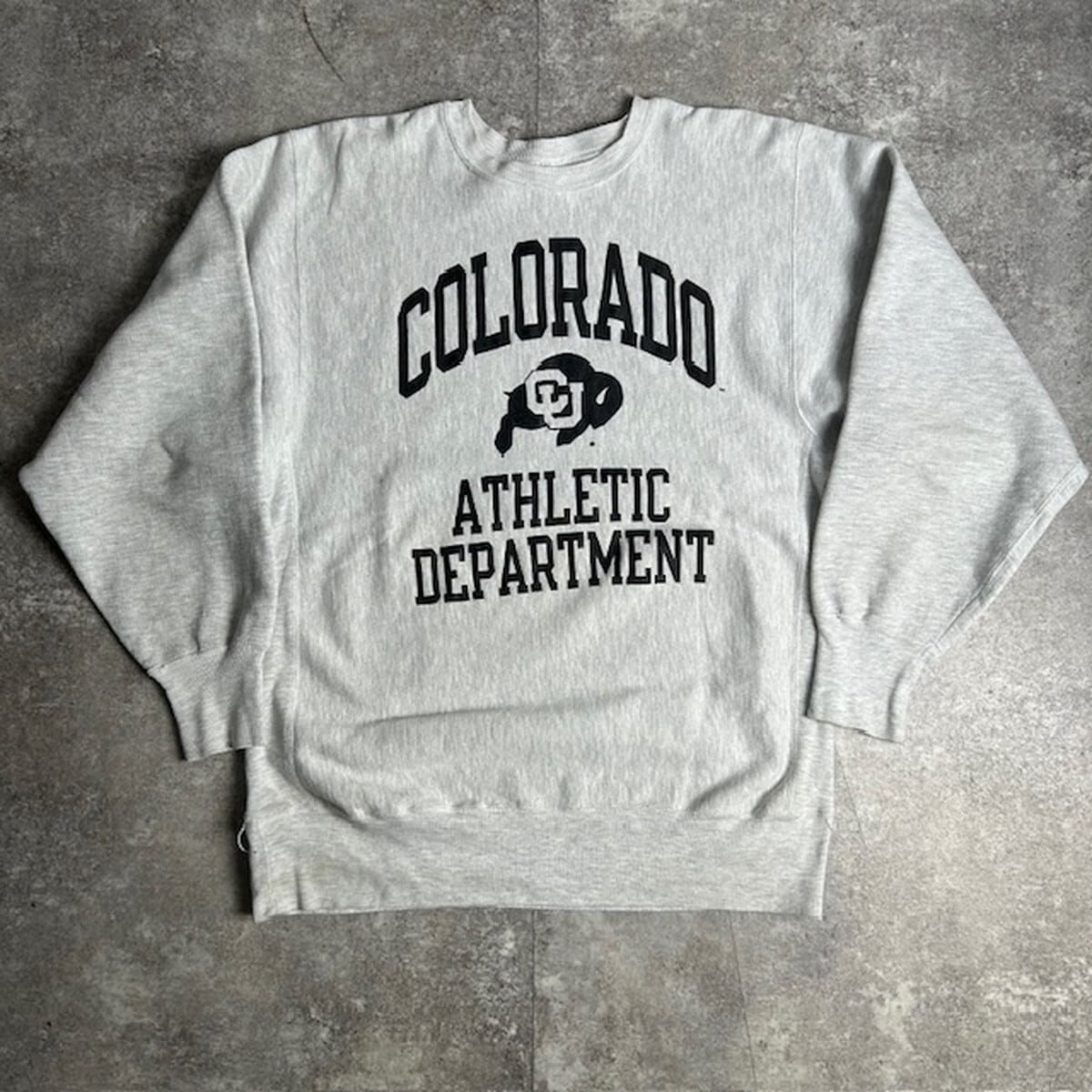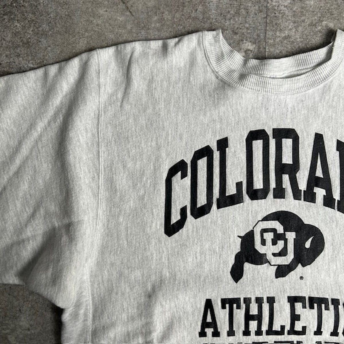 1990年代頃に製造された、チャンピオンの リバースウィーブ スウェット。三段プリントで仕上げられた コロラド大学のカレッジスウェット で、クラシックな雰囲気と存在感が魅力の一着です。