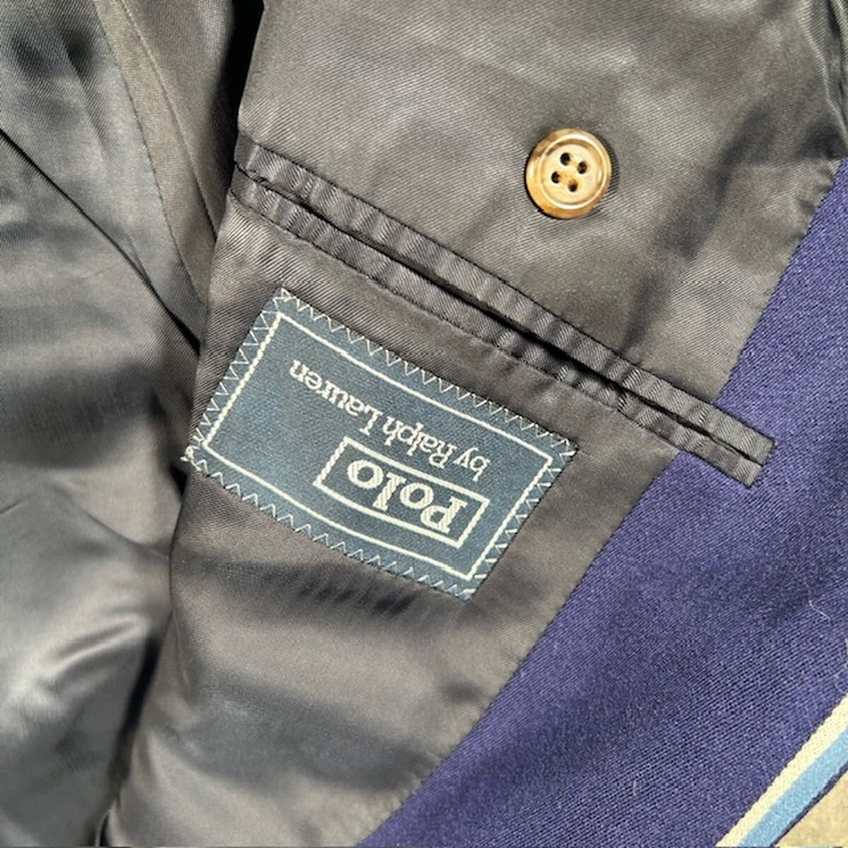 Polo Ralph Lauren ITALY製 ストライプテーラードジャケット ポロ ラルフ ローレン ブルー ウール 226KO
