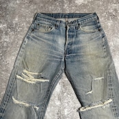 全体的に綺麗なアイスブルーカラーです。両膝にかなりのダメージございます。ジャンクコンディションながら、グランジ感が格好良いアイテムです。