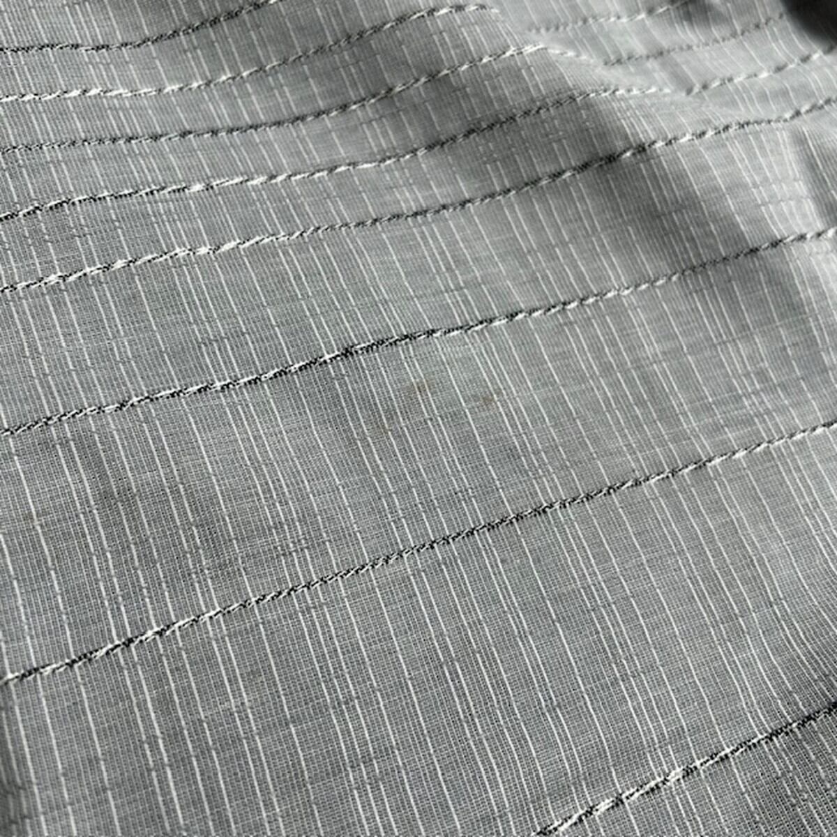 左肩と背中の中央あたりにシミ汚れがあります。右の脇腹の部分に糸のホツレあり。