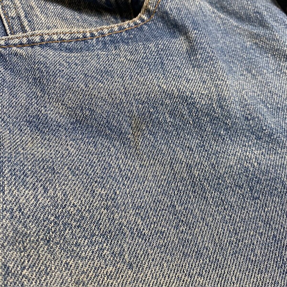 両膝に主にフェード感があり、右のフロントポケットの入口付近とお尻、両膝の所々にシミ汚れあり。