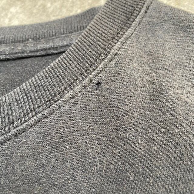 首周りと裾に小さなダメージが見られます。主に首周りにフェード感があります。