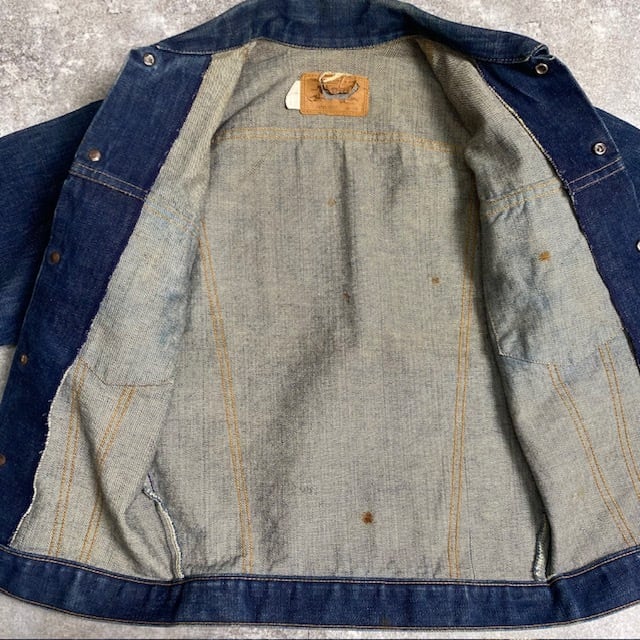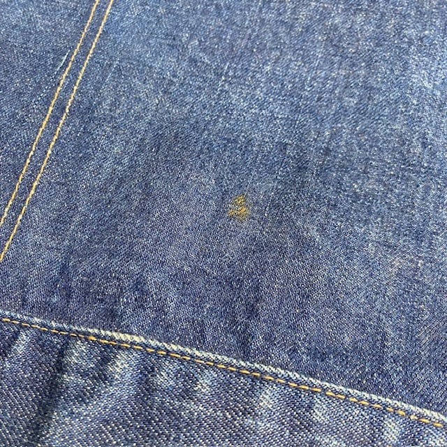 首元のブランドタグと裾にダメージがあります。ジャケットの内側にサビ汚れのような汚れがありますがジャケット自体の色残りが良く表面はあまり目立ちません。