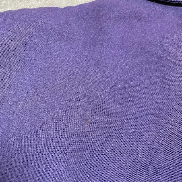 首周りと両袖、胴回り、肩甲骨付近にシミ汚れが見られます。右腕の縫製部分に簡易な