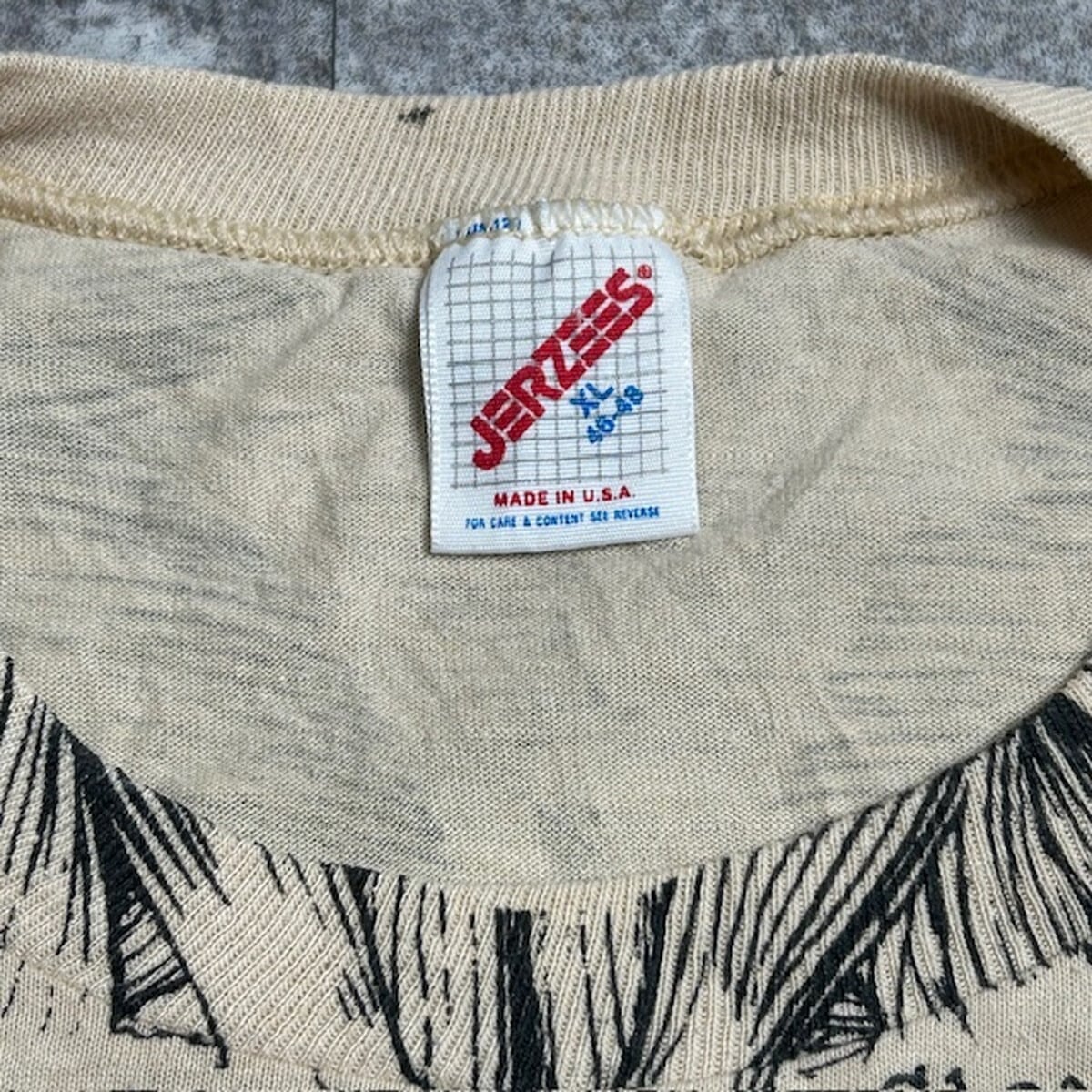 1980年代以降のJERZEESボディーのLeslie Arwin Tシャツです。両脇に淡く黄ばみあります。全体的に毛羽立ちあります。着用に際しての致命的なダメージや汚れはありません。