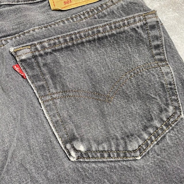1990年代、Levi's 501-0658 先染めブラックデニムパンツです。刻印653、赤タブ、スモールe、脇割、USA製、バックポケット裏チェーンステッチ。