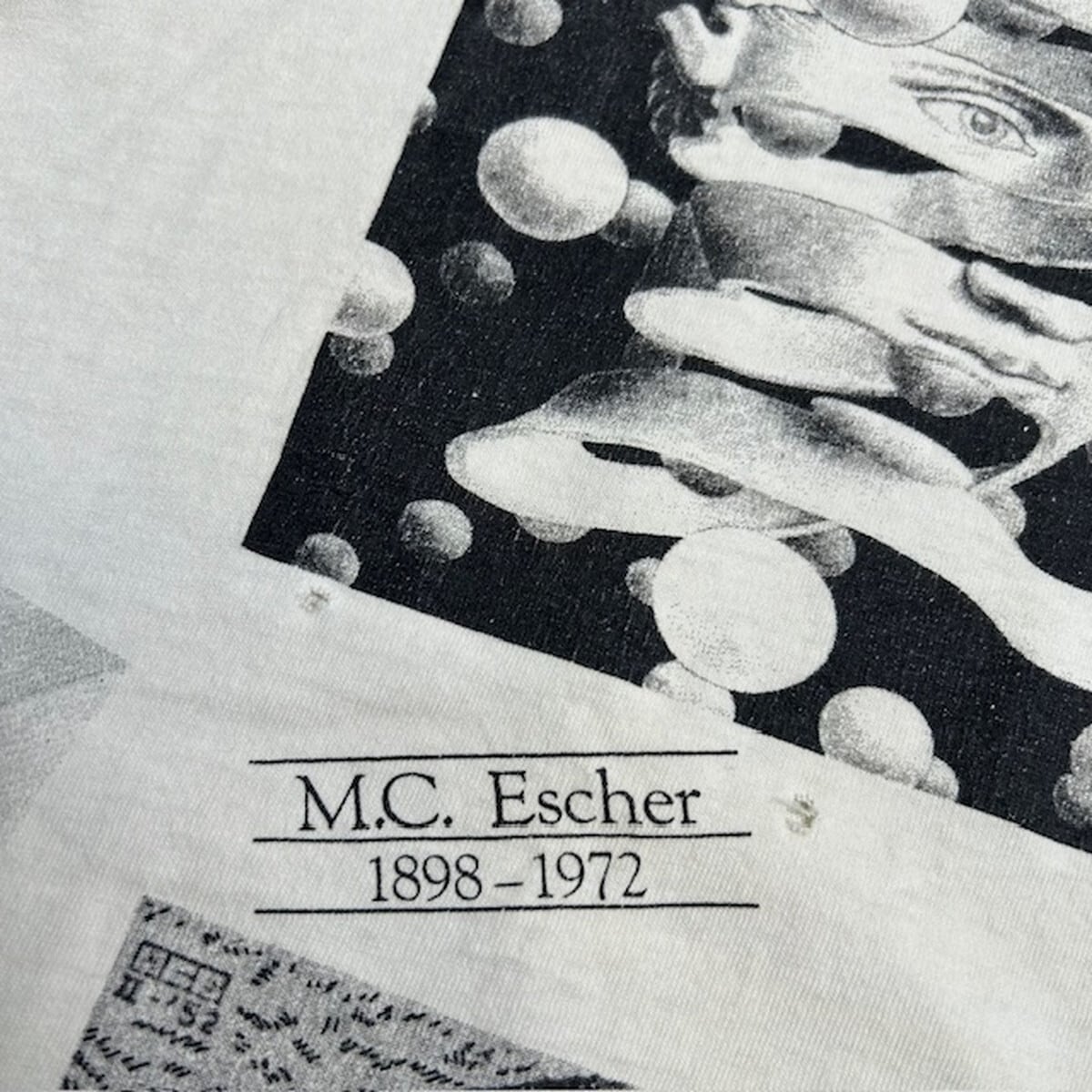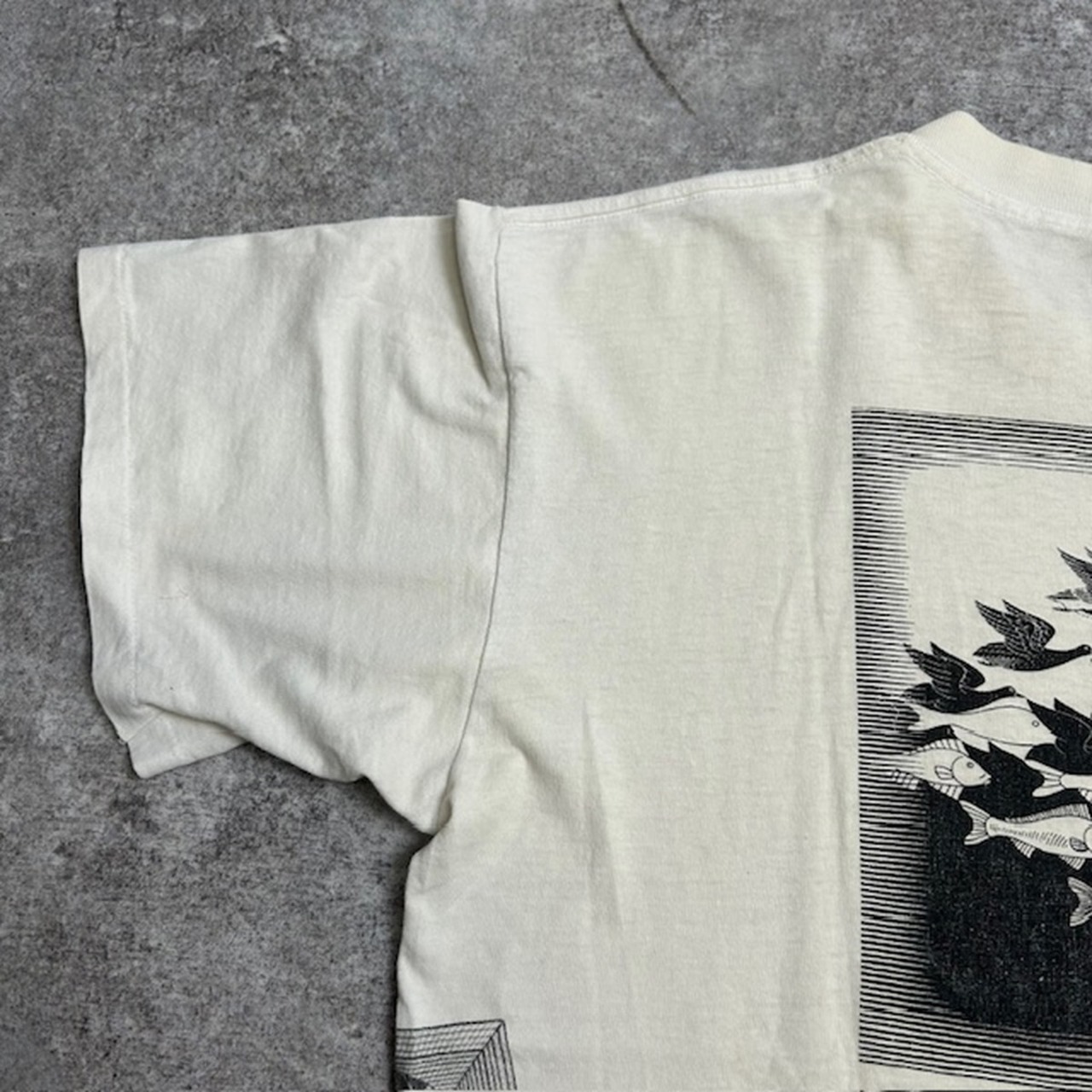 90's M.C.Escher art Printed Tee M.C.Escher エッシャー アートプリントTシャツ 騙し絵 USA製 シングルステッチ vintage ヴィンテージ 90s SOFTEE 745TA