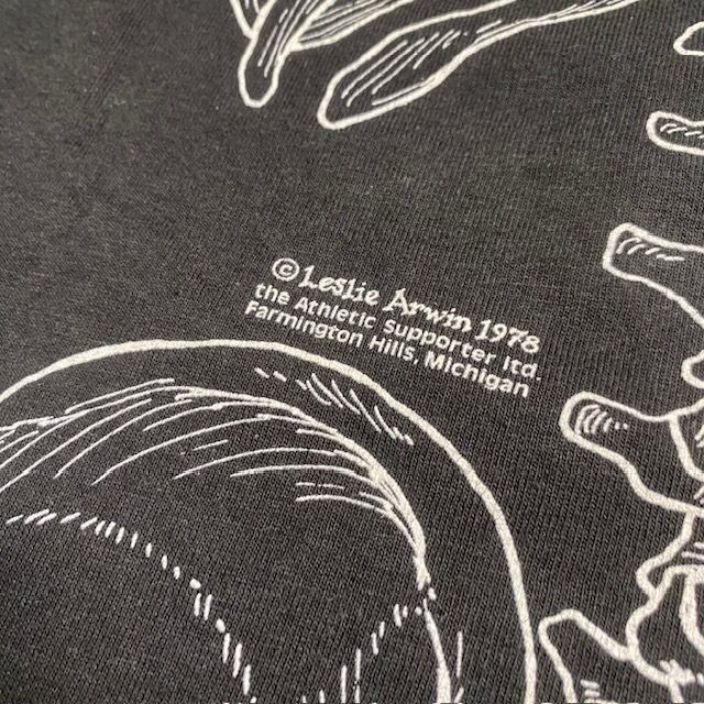 1990年代、Leslie Arwin ボーンプリントTeeです。FRUIT OF THE LOOMのボディ使用。