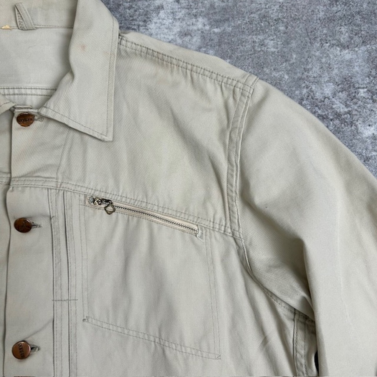 同じデザインのデニムジャケットは見ますがこのコットンツイルはあまり見ない品かと思います。