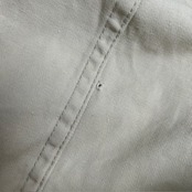 襟、左肩、右ひじなどに汚れ、各所にピンホールあります。