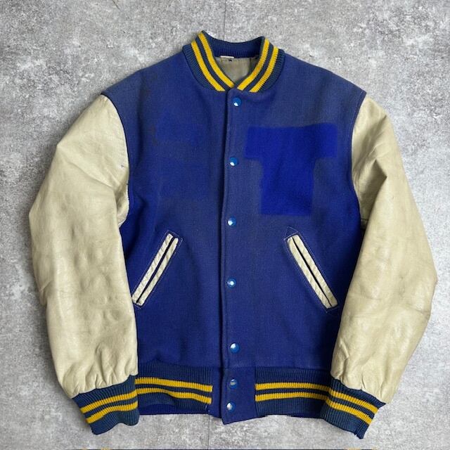 1960's 60s Unknown レザー袖バーシティージャケット スタジアムジャケット スタジャン ヴィンテージ vintage 631U